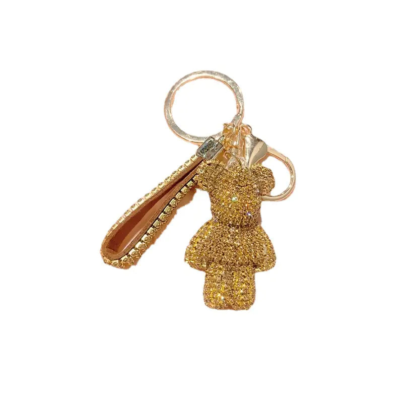 Crafted from high-quality alloy and finished with hand-set rhinestones, this teddy-bear keychain shines from every angle. It’s light enough for daily use yet refined enough to double as a statement piece on your bag or keys.